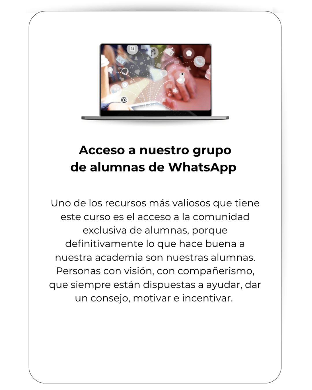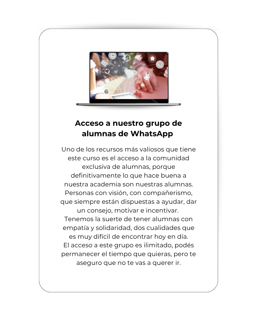Si, tenés acceso a los grupos de alumnas de Facebook, whatsapp, telegram y también tenés asesoramiento personalizado por whatsapp.